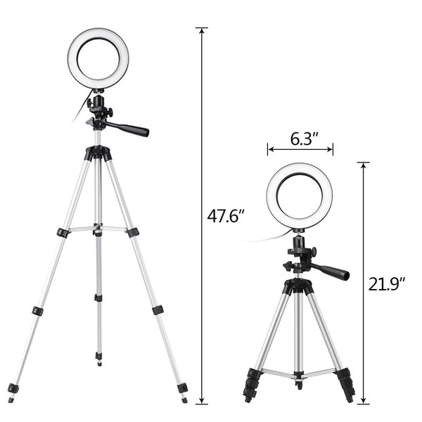 Haute qualité : fabriqué en alliage d’aluminium, ce qui lui confère une robustesse exceptionnelle pour les travaux intenses. Il s’agit de l’éclairage diurne à intensité réglable qui vous permet d’évacuer toutes les ombres discrètes ! 3 modes et 10 niveaux de luminosité : conçus avec 10 réglages de luminosité réglables pour que vous puissiez répondre à tous vos besoins dans différentes circonstances : trois modes : blanc, jaune chaud et blanc chaud. Chaque mode d’éclairage offre une luminosité réglable de 10 po pour répondre à tous vos besoins. Support pour trépied ajustable : un support à trépied léger extensible de 35 cm/13,8 po à 101 cm/39,8 po. Il suffit de le verrouiller à la longueur désirée pour votre utilisation préférée, vous pouvez le tenir sur le sol ou simplement placé sur votre table pour votre commodité. Multi-fonctions : conception 2-en-1 combinant le support de téléphone et la lumière de l’anneau selfie ensemble, c’est un outil professionnel pour créer des vidéos en direct/enregistrer avec téléphone intelligent ou ordinateur. Convient pour la salle de conférence de salon, la salle de conférence, etc. Alimenté par USB : la lampe alimentée par USB vous procure plus de commodité. Vous pourrez profiter de la lampe et du support pour téléphone cellulaire à tout moment. support de téléphone cellulaire rotatif à 360 ° : porte-téléphone cellulaire universel avec rotation de 360 ° très facile à utiliser. compatible : compatible avec la plupart des téléphones intelligents tels que iPhone XS/XS MAX/XR/X/iPhone 8/8 plus Samsung Galaxy Note 8 9/S 8/s8 plus/S9/S9 PlusLG/Huawei/HTC ect.